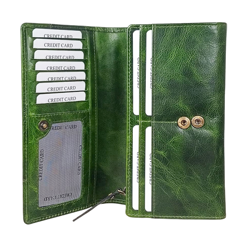 Stand out in style with this Handmade Genuine Leather Women’s Wallet in a stunning green finish. Perfectly blending elegance and functionality, this long clutch purse is a unique accessory designed for modern women.