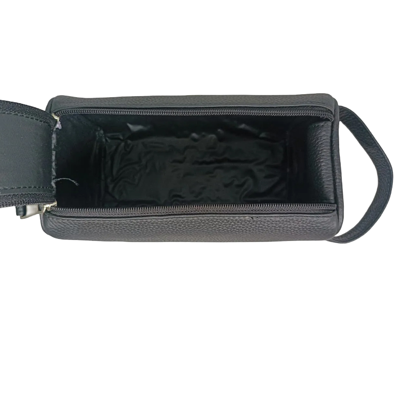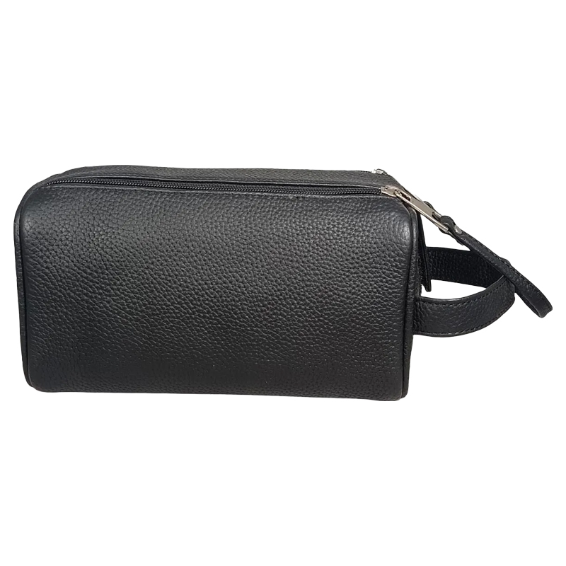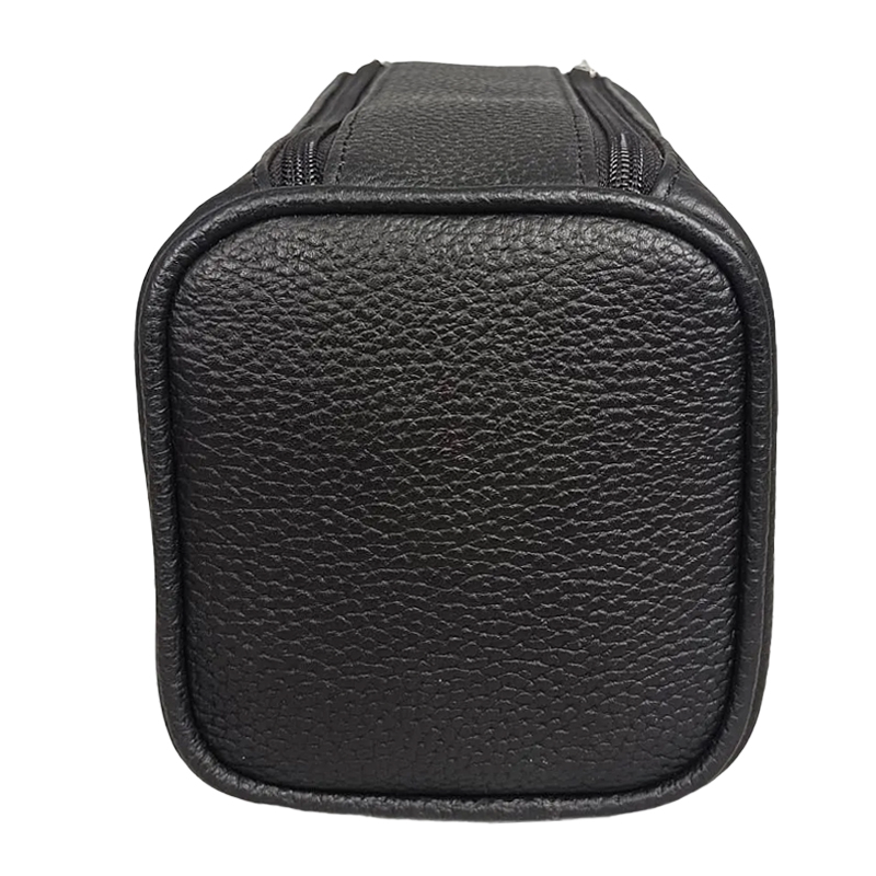 Stay organized while traveling with this Black Leather Toiletry Bag, designed to hold all your grooming and travel essentials in style. Made from durable, textured leather, this dopp kit features dual zipper compartments, a side handle for easy carrying, and a spacious interior for toiletries, shaving kits, and accessories.