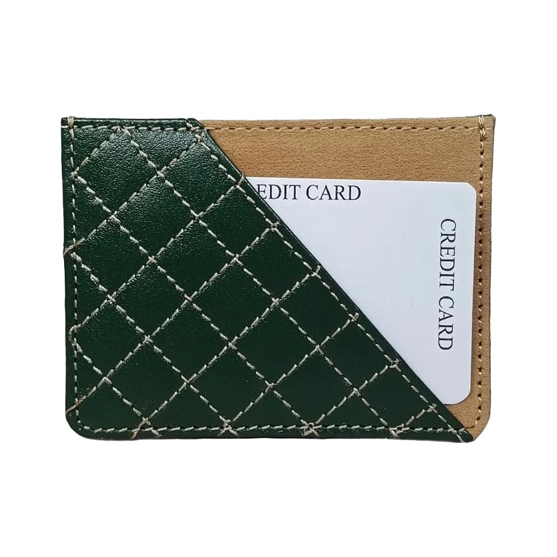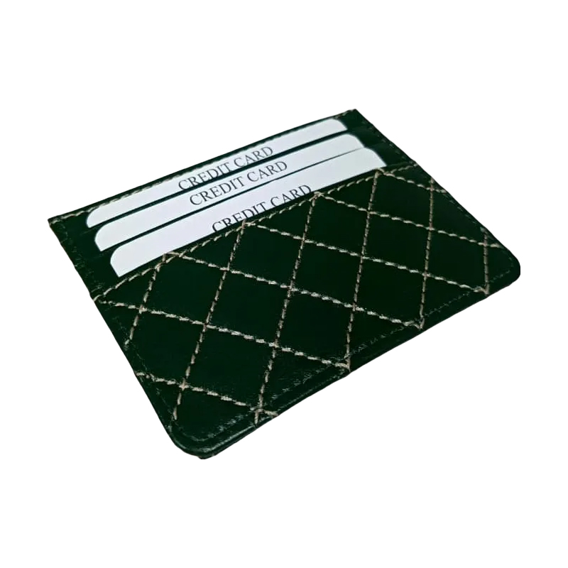 Enhance your style with our Elegant Green Quilted Leather Credit Card Holder, a slim wallet designed for both men and women. Crafted from premium quilted leather, this wallet offers a luxurious look and exceptional durability. Perfect for everyday use, it features multiple slots to securely hold up to 4 credit cards. Its compact design slips easily into pockets or bags, combining practicality with a sophisticated aesthetic.