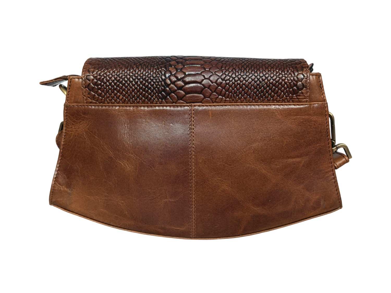 Upgrade your accessory game with this elegant and trendy genuine leather crossbody sling bag. Crafted from premium leather, this compact yet spacious purse combines functionality with fashion. The striking brown color and snake skin texture flap add a bold and unique touch, making it perfect for daily use or special occasions.