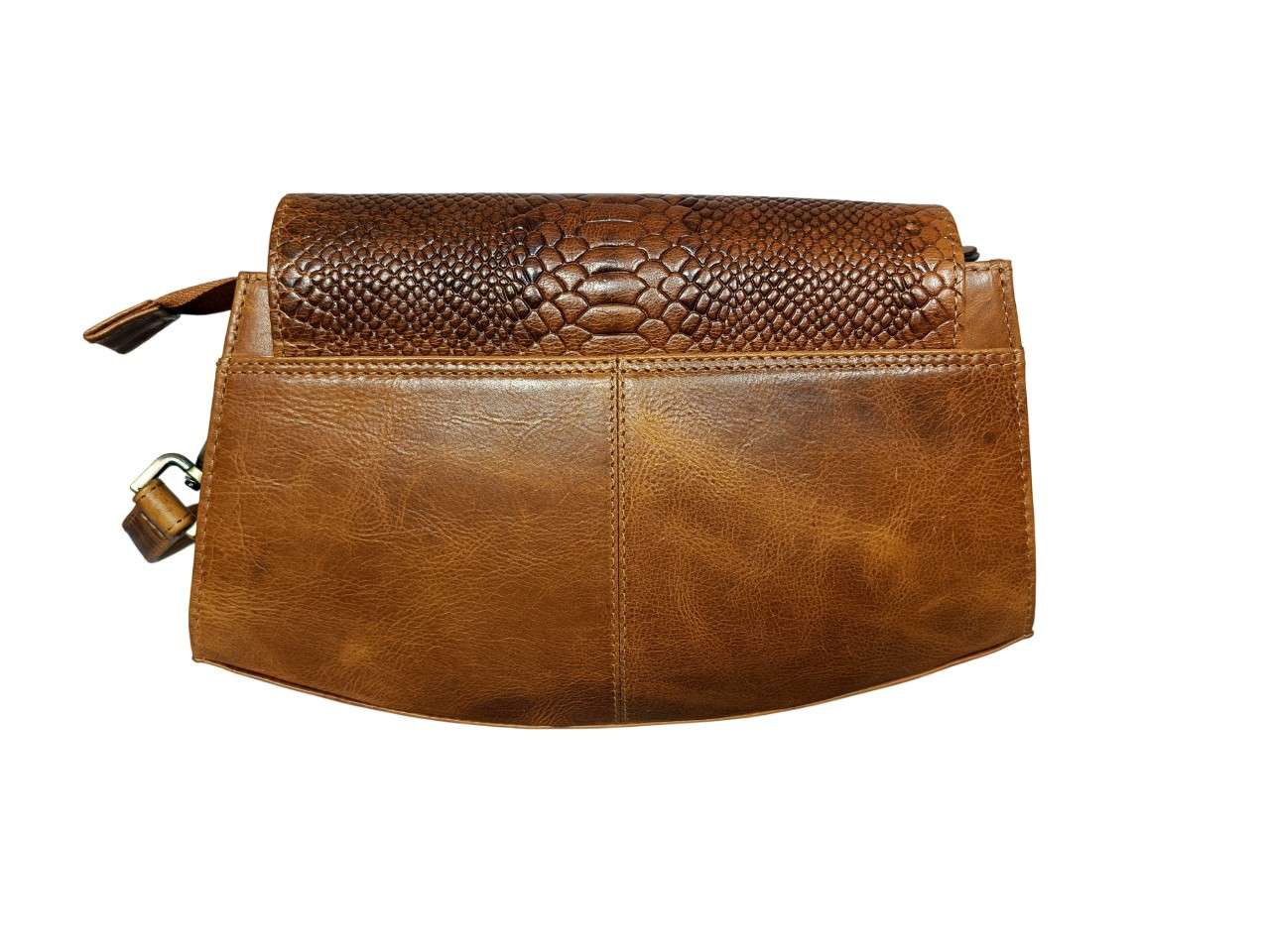 Upgrade your accessory game with this elegant and trendy genuine leather crossbody sling bag. Crafted from premium leather, this compact yet spacious purse combines functionality with fashion. The striking tan color and snake skin texture flap add a bold and unique touch, making it perfect for daily use or special occasions.