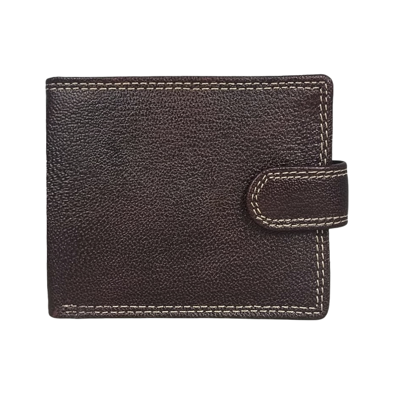 Stylish Brown Wallet: Bifold design with multiple card slots, a coin pocket, and a transparent ID window.