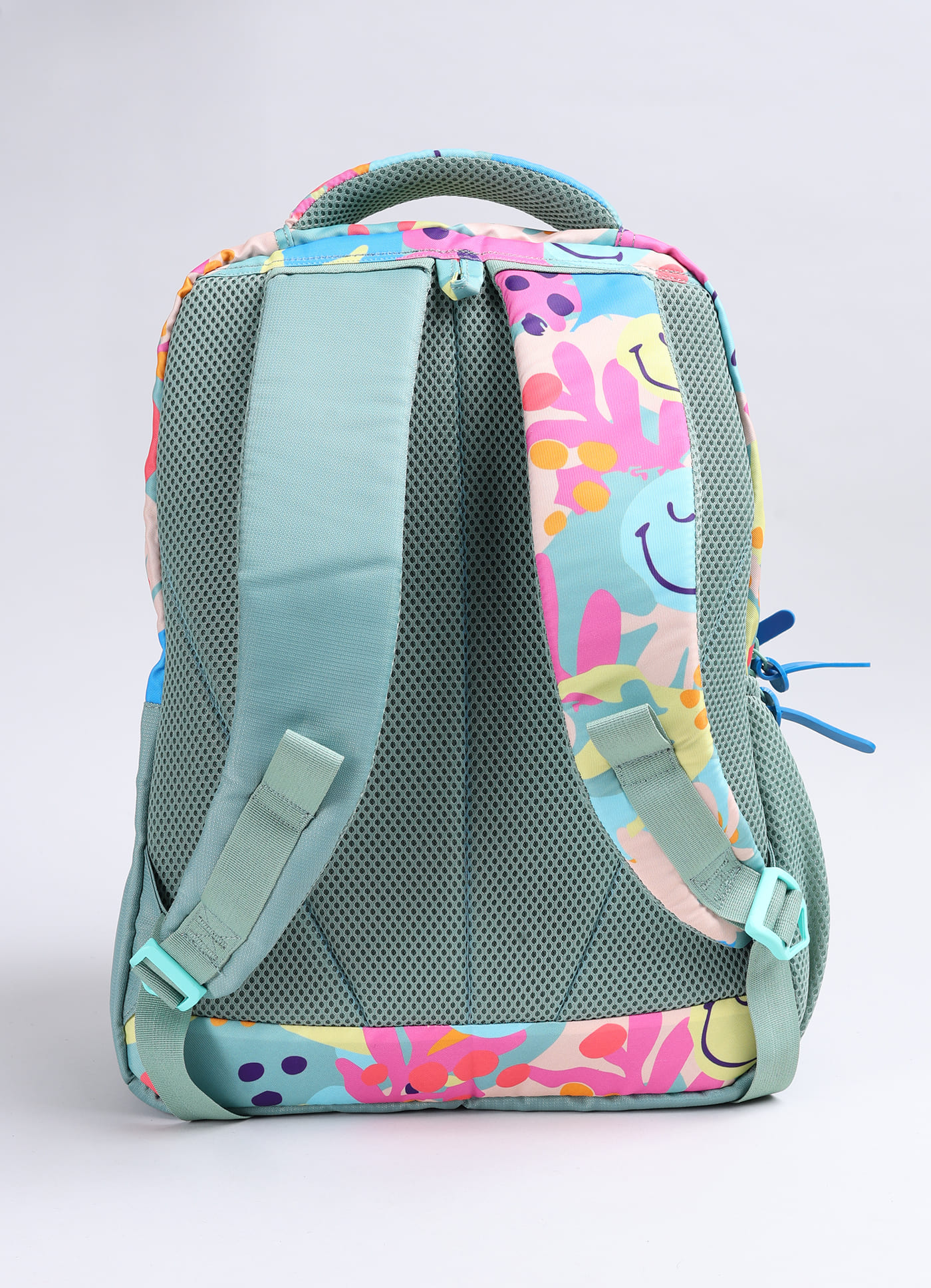 Padded back and shoulder straps::Top padded handle::Front pocket