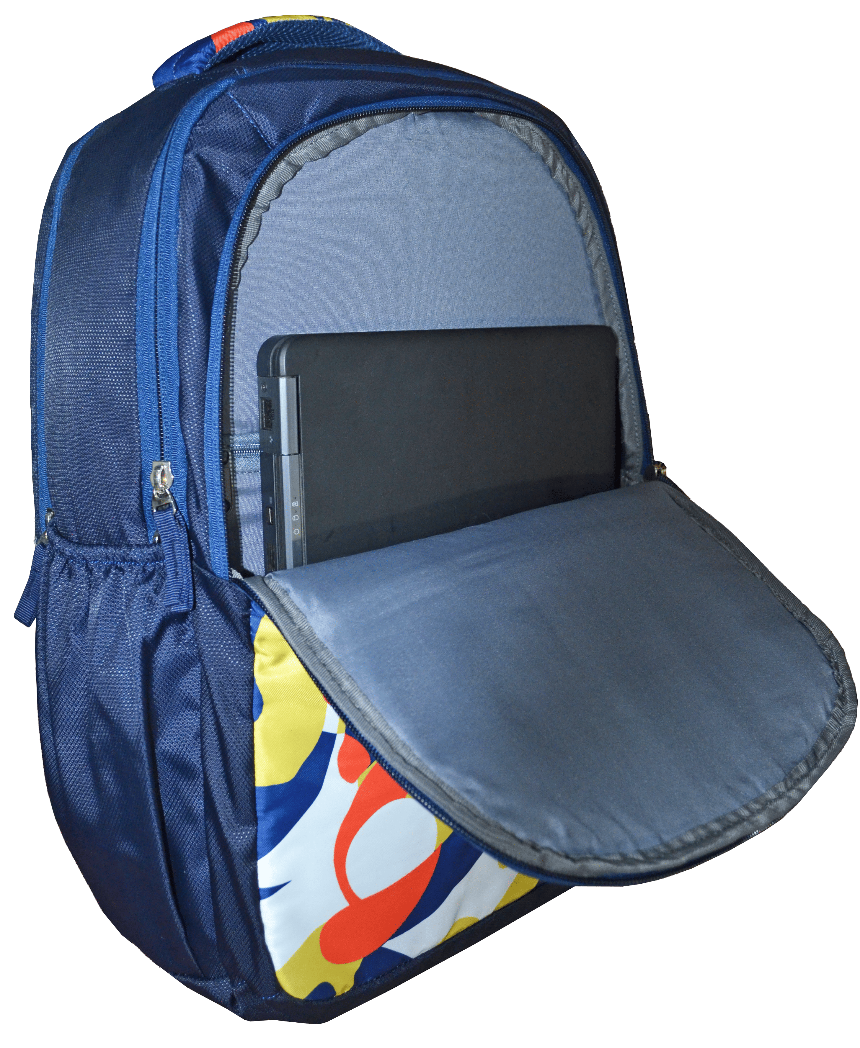 Introducing our D.Blue Printed Backpack, designed for those who need both style and functionality. This spacious backpack features a generous 32-liter capacity, perfect for carrying all your essentials for school, college, or office use. It includes three main compartments, a front pocket for easy access to smaller items, and a side bottle pocket to keep your water or accessories handy. The laptop sleeve ensures your device stays safe and secure. For added protection against the elements, this backpack comes with a built-in rain cover to keep your belongings dry on rainy days. Comfort is key with a top padded handle, padded back, and adjustable shoulder straps, providing support during long hours of use. The sleek D.Blue color and trendy printed pattern make it a versatile choice for girls, boys, men, and women. With a height of 47 cm, length of 32 cm, and width of 21 cm, it offers the perfect balance of size and practicality. Whether you're commuting to work, attending classes, or traveling, this backpack combines durability, style, and organization to meet your everyday needs.