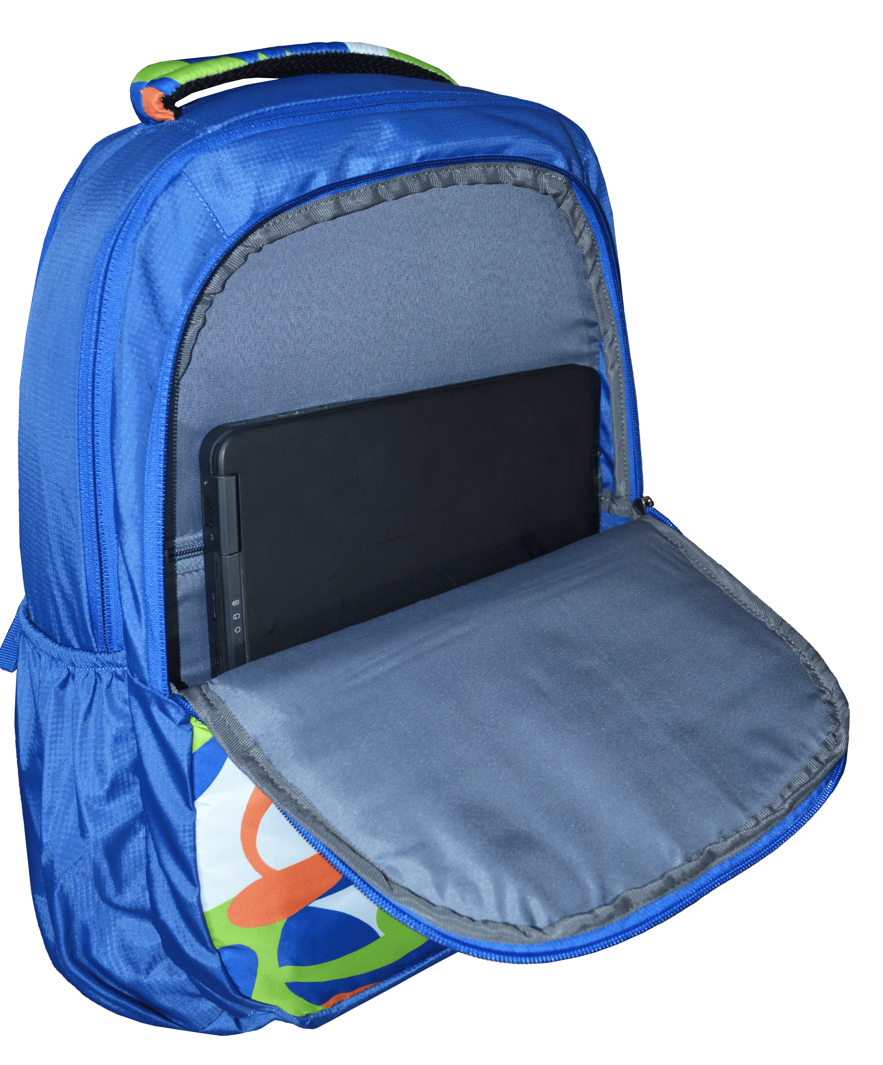 Introducing our R.Blue Printed Backpack, designed for those who need both style and functionality. This spacious backpack features a generous 32-liter capacity, perfect for carrying all your essentials for school, college, or office use. It includes three main compartments, a front pocket for easy access to smaller items, and a side bottle pocket to keep your water or accessories handy. The laptop sleeve ensures your device stays safe and secure. For added protection against the elements, this backpack comes with a built-in rain cover to keep your belongings dry on rainy days. Comfort is key with a top padded handle, padded back, and adjustable shoulder straps, providing support during long hours of use. The sleek R.Blue color and trendy printed pattern make it a versatile choice for girls, boys, men, and women. With a height of 47 cm, length of 32 cm, and width of 21 cm, it offers the perfect balance of size and practicality. Whether you're commuting to work, attending classes, or traveling, this backpack combines durability, style, and organization to meet your everyday needs.