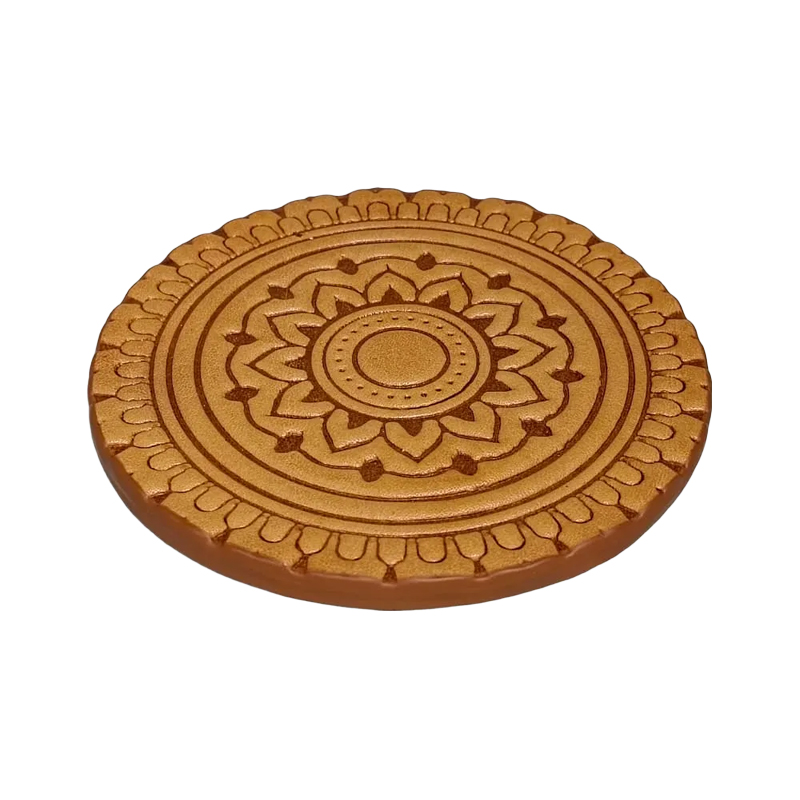 Elegant Design – Round faux leather coaster with embossed detailing for a stylish and classy look.
