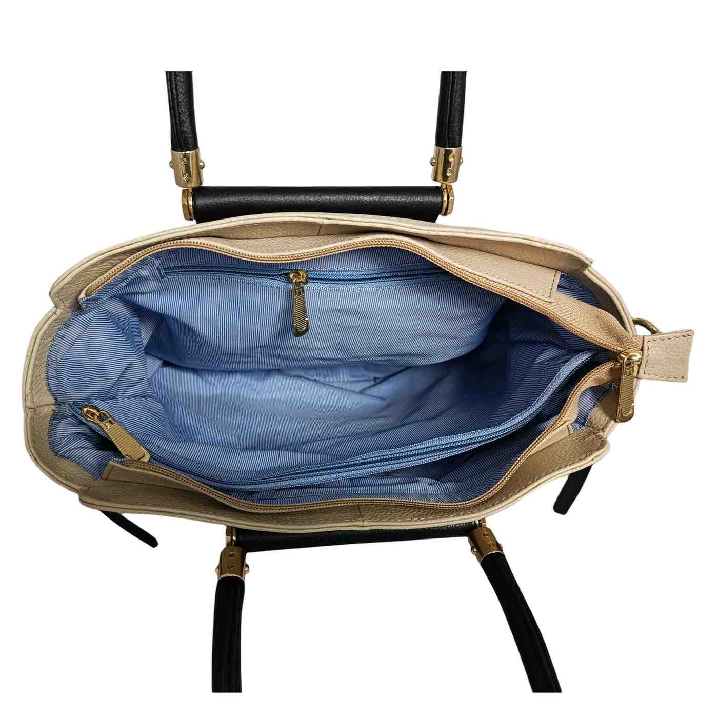 Elevate your everyday style with this sophisticated women’s handbag, crafted in a beautiful beige and black color combination. Made from premium quality faux leather with a soft, textured finish, this handbag effortlessly combines fashion with functionality. Whether you’re heading to work, shopping, or a casual outing, this versatile bag is designed to complement your look and keep you organized.