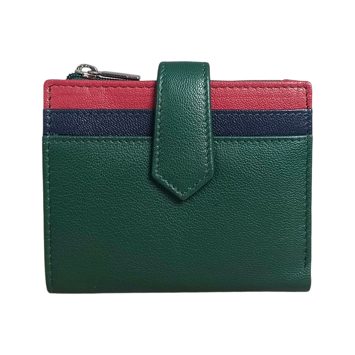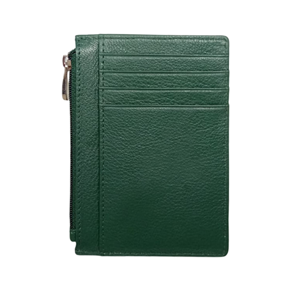 The wallet features multiple card slots on both sides, making it easy to organize your credit cards, debit cards, ID cards, and business cards. The secure top zipper compartment provides additional space to safely store coins, folded cash, or small valuables.