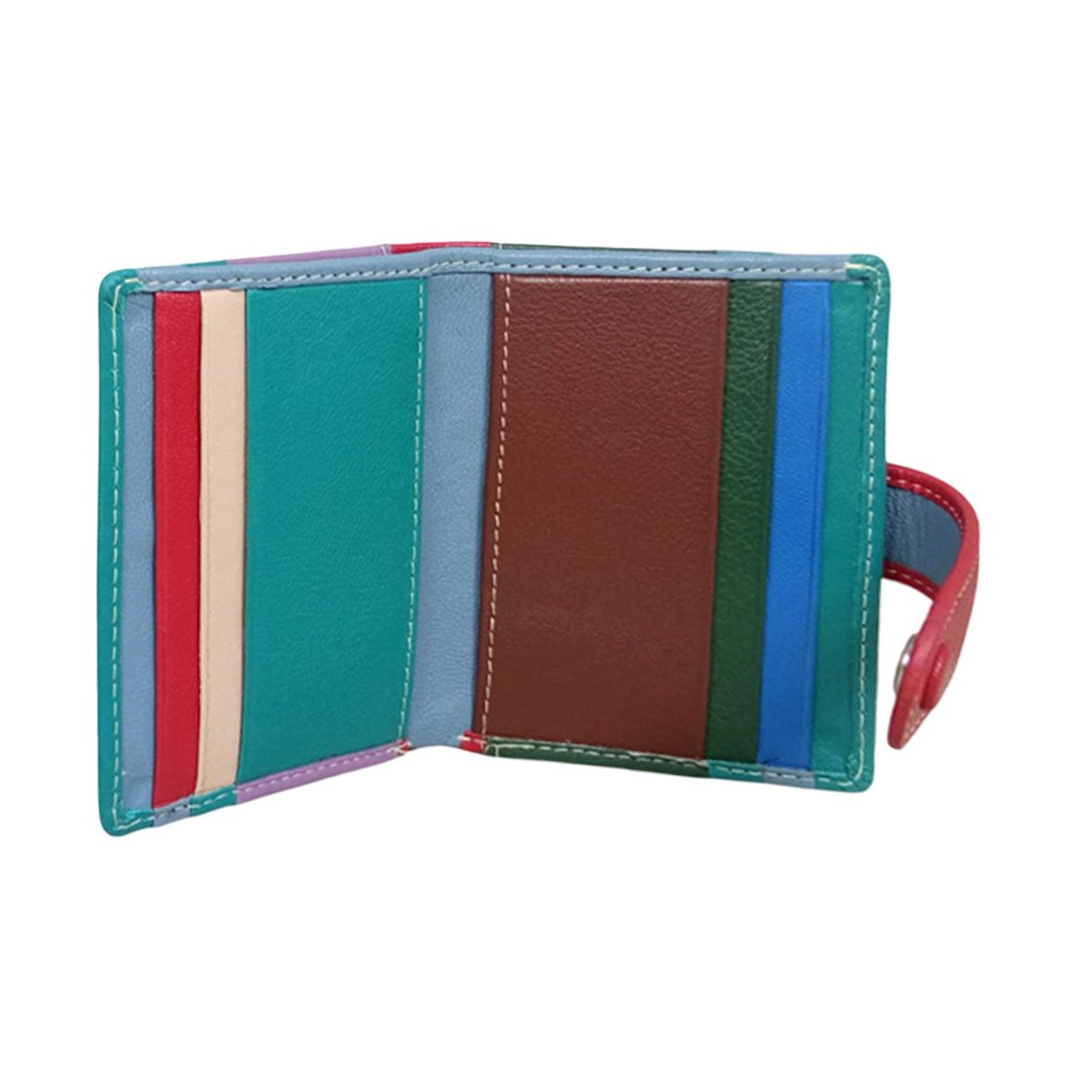 Add a bold and vibrant touch to your everyday essentials with this eye-catching women’s wallet. Featuring a stylish mix of teal, lavender, green, and a striking red strap, this wallet is designed for women who love color and uniqueness.