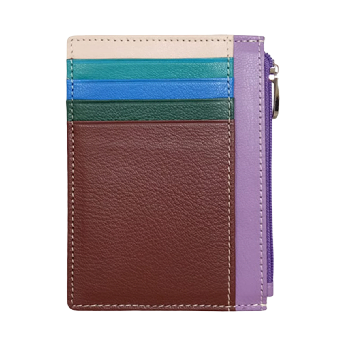 Slim Card Holder Wallet with Zipper Pocket – Multicolor Leather Credit Card Holder | Minimalist Front Pocket Wallet with Multiple Card Slots | Compact Travel Wallet for Men & Women