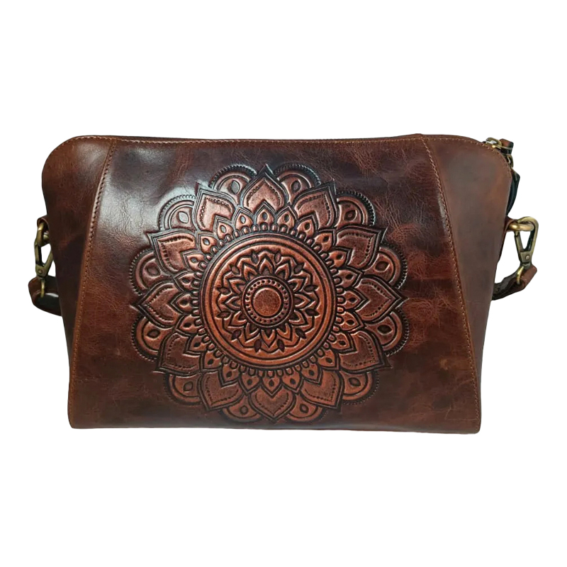 Stylish Handcrafted Blue Leather Hand Bag for Women - Elegant Handbag with Embossed Mandala Design, Dual Handles, Adjustable Shoulder Strap, and Spacious Interior - Perfect for Work, Travel, and Daily Use
