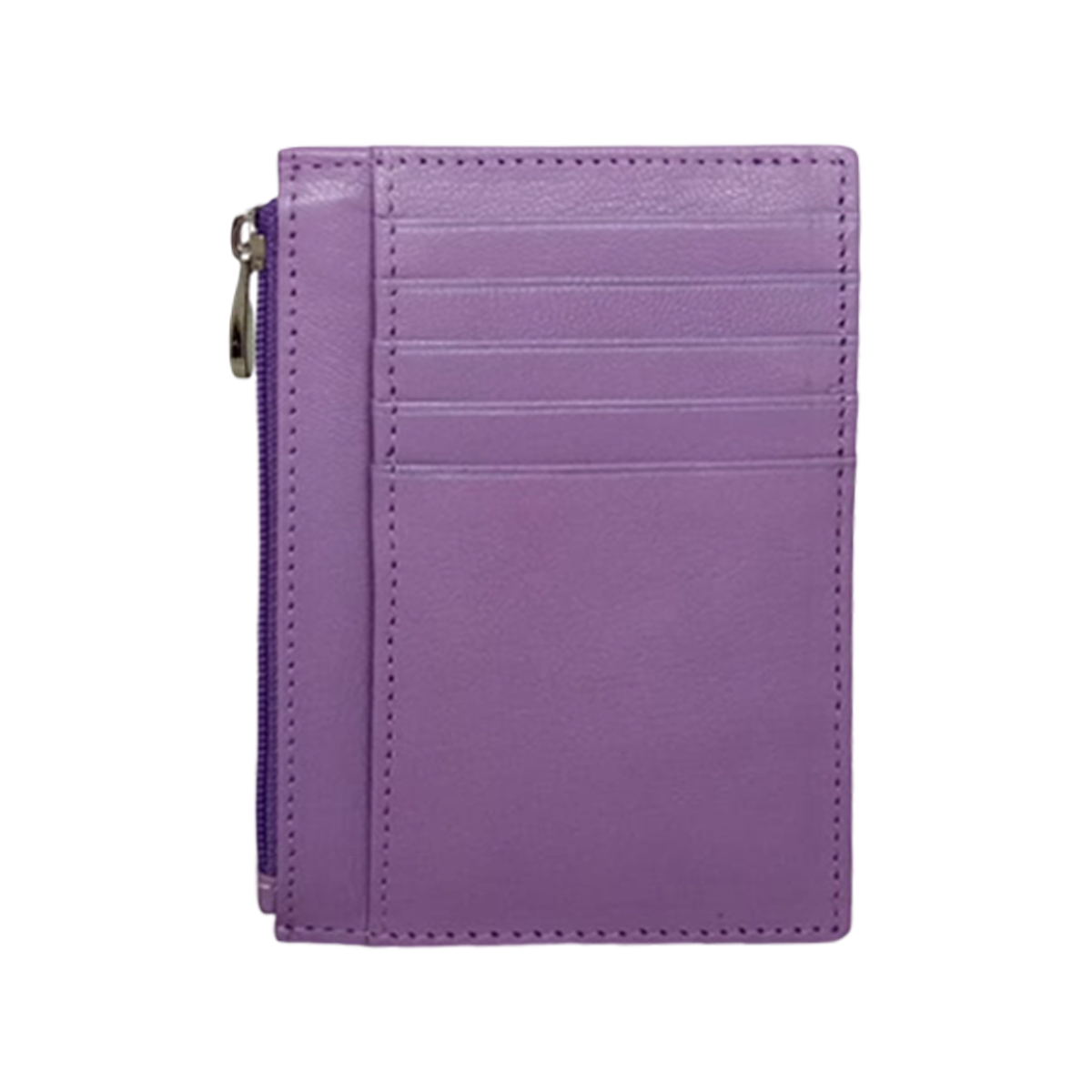 Unisex Slim Card Holder Wallet with Zipper – Multicolor Leather Credit Card Holder | Minimalist Front Pocket Wallet with Multiple Card Slots | Compact Travel Wallet for Men & Women