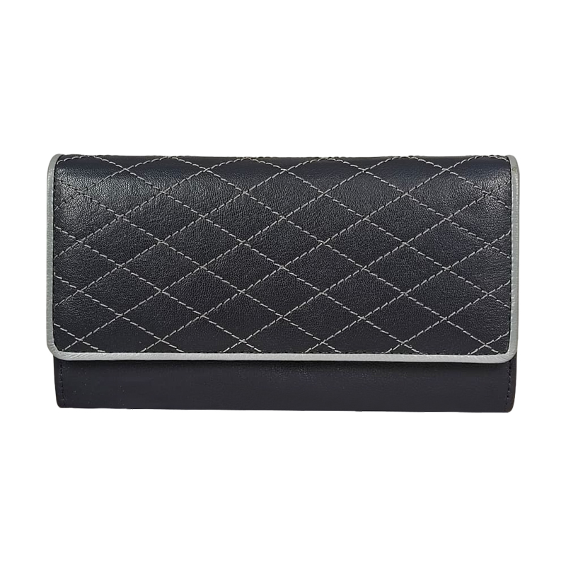 Women's Navy Blue Leather Wallet -Ladies purse Chic Zip-Around Clutch with Wrist Strap
