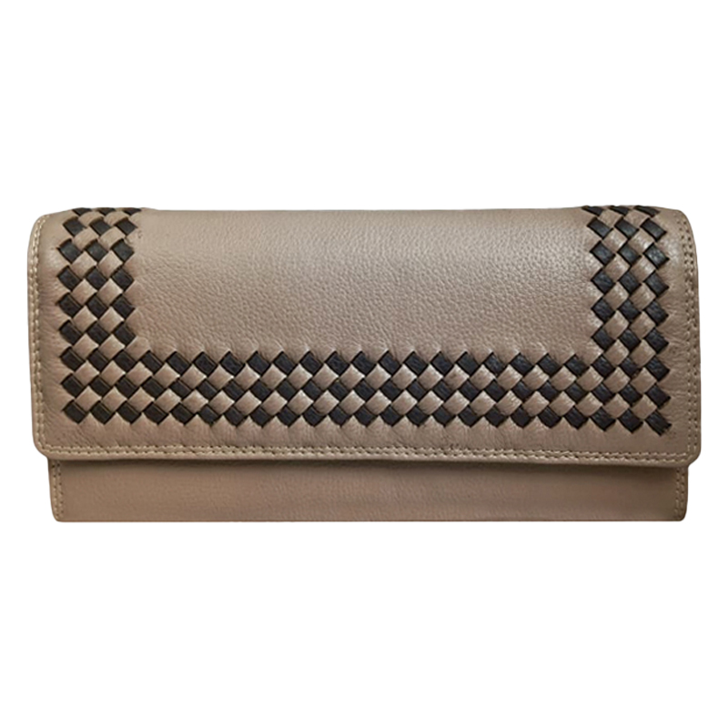 Chic Women's Genuine Leather Wallet - Ladies Purse Woven Pattern Clutch with RFID Blocking, Multiple Card Slots, Zippered Coin Pocket, and Spacious Bill Compartment for Stylish Everyday Use