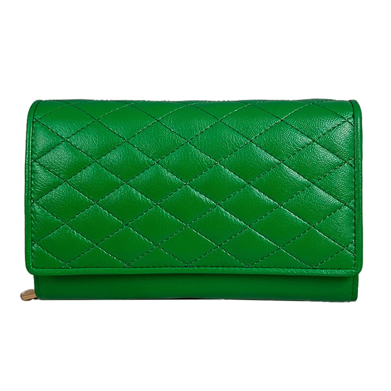 Elegant Green Quilted Leather Wallet for Women - Ladies Purse Spacious Multi-Section RFID Blocking Organizer with Zippered Coin Pocket, Multiple Credit Card Slots, and Durable Stylish Design - Perfect Gift for Her